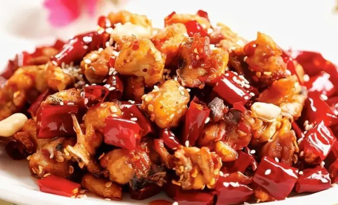 第五道美食是辣子鸡。辣子鸡是一道典型的川菜美食,外酥里嫩,香辣可口,回味无穷。重庆的辣子鸡更是有独特的特色,每一口都能感受到麻辣的味道。