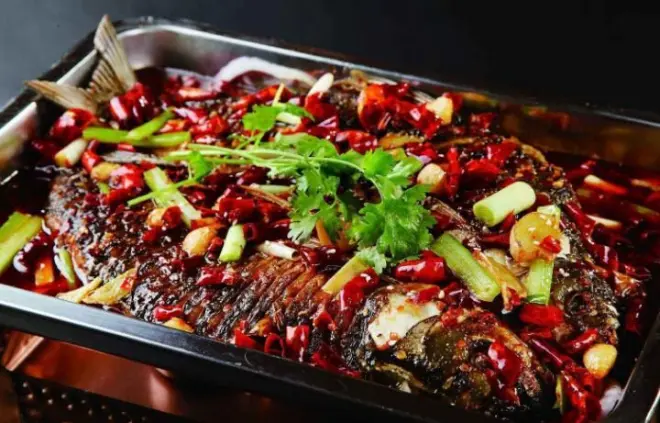 第二道美食是重庆烤鱼。重庆烤鱼是一道融合了重庆美食文化的独特美食,口感鲜美,香气扑鼻,每一口都是一种享受。它的独特之处在于采用了特别的香辣调料,使烤鱼更加鲜美。