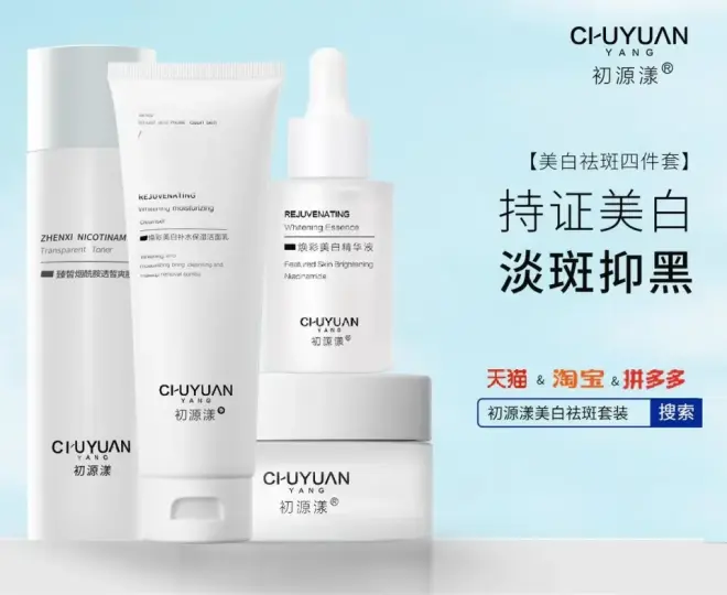 初源漾美白祛斑套装是一款国产的护肤品,其中包括了洗面奶、爽肤水、美白精华、祛斑面霜和美白面膜多种产品。它采用了多种天然植物萃取精华,如天女木兰提取物、熊果苷等,能够有效地淡化色斑,提亮肤色,使肌肤更加水润有弹性。