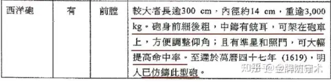 由于此时广东北运的英国铁炮还没进入北方,这里提到的西洋炮当为两类,一是万历四十八年传入北方的西班牙射石炮~吕宋铜炮、亦或者南方流行的发熕炮。