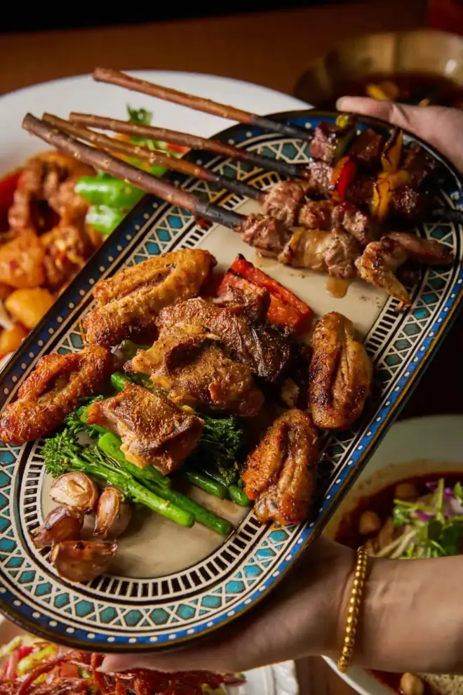 选择困难症看这里👀!让肉食控魂牵梦绕的烧烤拼盘,一道享遍多款美味。现烤上桌还在滋滋冒着热油,红柳枝羊肉串、牛肉串、烤鸡翅、烤羊排,主打就是一个皮脆肉嫩,搭配烤蒜和时蔬中和油腻,尽管大快朵颐!