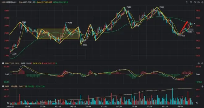 铁矿今日收倒锤子阳线,日线分型还未确认,等待确认后,个人参与一笔下,目前还是看多对待,所以整体下方空间还是有限,内部结构上,30分钟MACD未过零轴,目前等待下探观察能否破位来完成日线分型的确认,操作上分笔参与为宜,不排除当前区域构建中枢的可能,毕竟这个位置,多空博弈还是比较激烈的,暂时不能期待太多。再看5分钟图,破位后的一笔反弹力度可以,目前配合MACD在零轴附近震荡以中枢构建对待,当前30分钟按照震荡对待的,所以5分钟但凡有破位或者背驰,就要谨慎一些,减仓离场,确保颗粒归仓;