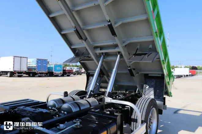 双90缸径油缸能够最大程度上保证车辆载货后的举升性能,面对重载也能做到平稳的举升。货箱还带有原厂原装位检修保险装置,维修保养时增加作业安全性。