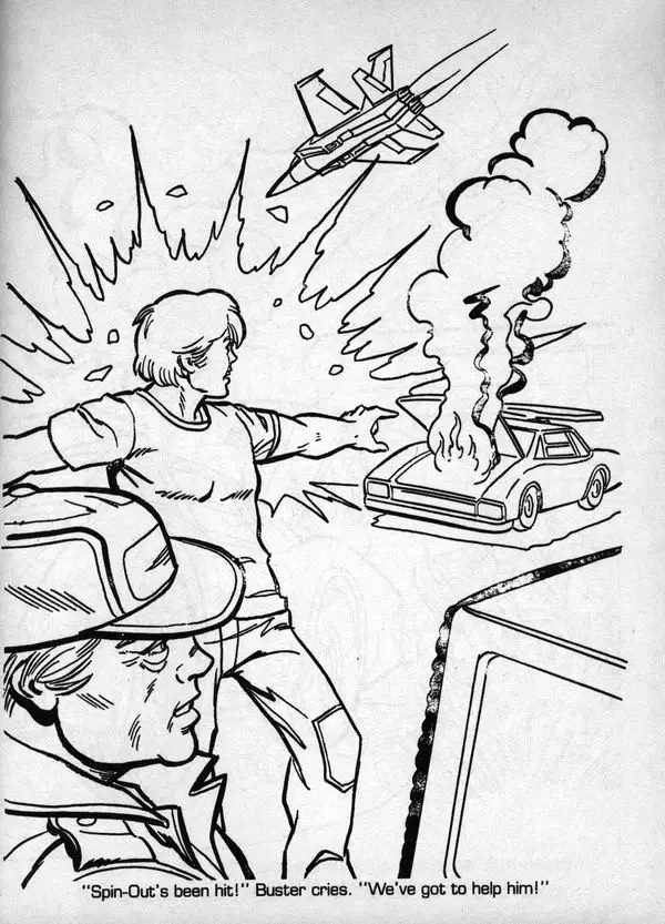 飞毛腿Sunstreaker(G1)被击中,所以飞过山Cliffjumper(G1)带着巴斯特·维特维奇Buster Witwicky(G1)和斯派克普拉Sparkplug去修理他。