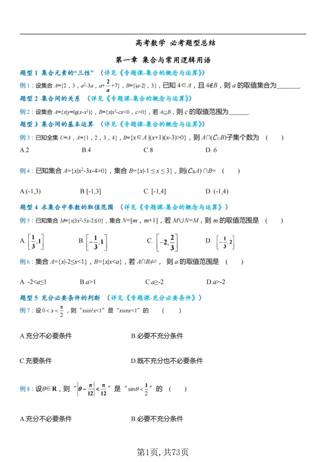 这里有已经整理好的各种题型,基本上一种题型几道题,带你全面地学会地高考数学做题方法