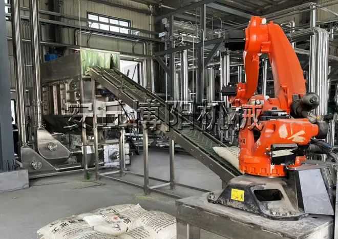 碳酸钙全自动拆包机械手可根据客户具体需求实现非标定制,为不同企业设计不同的解决方案,实现了私人定制化,该生产线清空率高、拆垛拆包速度快、可以连续作业,不但帮助企业解决了物料残留造成的浪费问题,也提高了企业的生产效率,促进了企业自动化生产的进程。