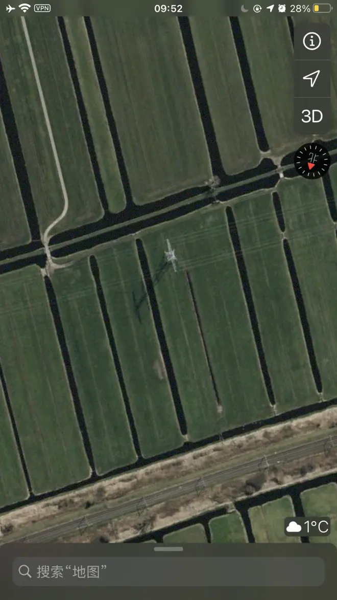 选一条出现频率较高的列车路线1700进行探查,用虚拟定位将起始位置定位到海牙,打开飞行模式,开全局代理,目标地点为阿默斯福特,查看火车路线,发现与EyeOpener的路线相当吻合,地图切换为卫星模式,沿铁路重点搜查农田和电塔,废了一番功夫找到了(主要是火车路线地图切换卫星地图会自动变成公交地图)