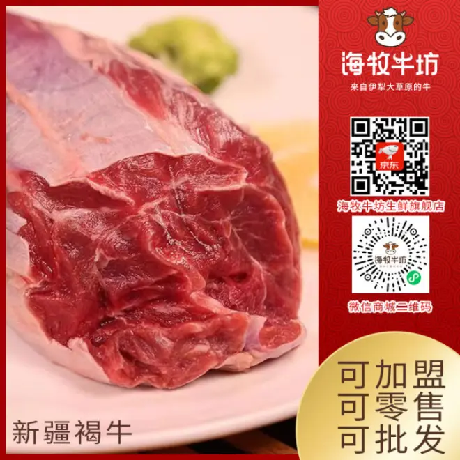 海牧牛坊是新疆生产建设兵团第四师供销社旗下拥有全产业链的国营品牌,浙江海牧牛坊商贸有限公司主要负责批发和零售海牧牛坊牛羊肉产品,公司为浙江、江苏、上海、安徽地区的总代理及全国网上销售的独家经营权,公司郑重承诺:每一份牛羊肉,均来自美丽的伊犁大草原,牛肉均为新疆褐牛,在草原上牛羊们沐充足阳光、食天然牧草、饮雪山融水,营养价值更加丰富,肉质细嫩,味道且浓郁。