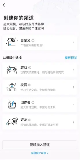 游戏模板、校园模板、创作者模板还有好友模板
