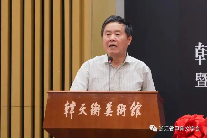 书法家、篆刻家、金石学家、书法教育家,浙江省甲骨文学会会长、中国美术学院博士生导师韩天雍教授致辞