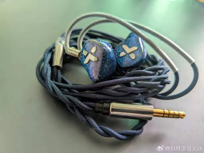 回到QTX耳机本体,入手是树脂的温润和扎实的质感,表面颜色的工艺使得在不同光线下呈现出蓝色和紫色的渐变,呈现出星空的感觉,颜值和质感值得一夸