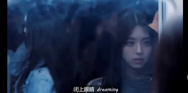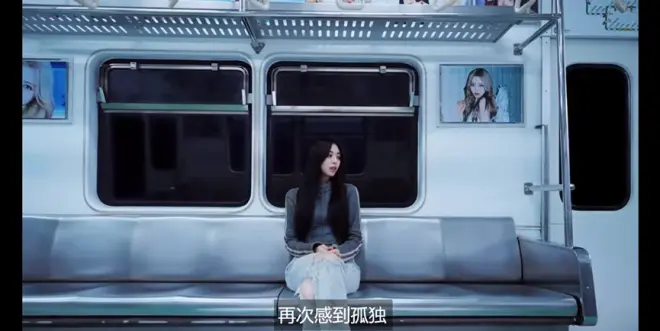 申有娜:作为片段主角的yuna坐在画面中心 但不是地铁位子的中心(可以看到人左右的地铁位子不是对称的)反映孤独与友谊的缺位