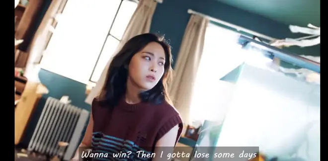 申留真:这里也使用了跳切,黑白对比的剪辑,从白天(被流言蜚语击破舒适圈)到黑夜(自己觉得更放松的独处时光)再到白天(坚定那个声音,为走出门铺垫)