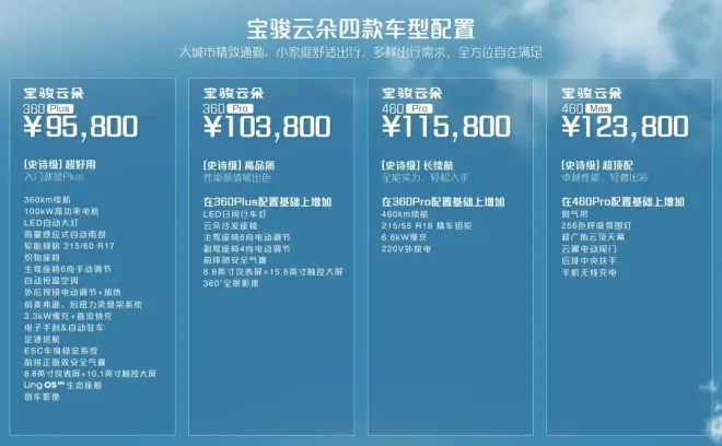 另外,宝骏云朵还将推出460灵犀版,这款配置车型将搭载灵犀智驾2.0系统,支持跨层记忆泊车、循迹倒车、0-130km/h全速域智能行车辅助,这些都是比亚迪海豚没有的功能。