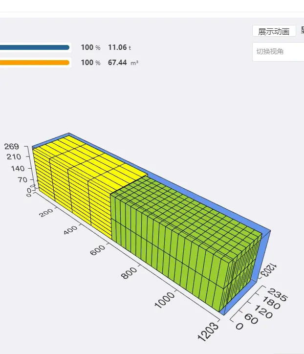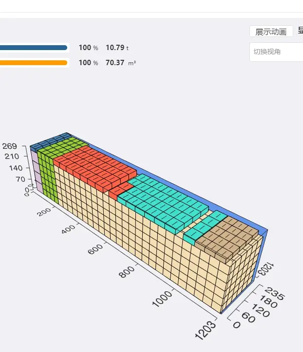 2、生成3D装载方案,指导图和装载动动画,货物摆放一目了然。
