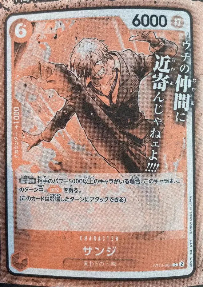 【登场时】对方存在力量不低于5000的角色的场合,本回合中,此角色获得【速攻】效果。