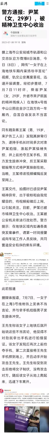 【1】警方通报:尹某(女,29岁),被精神卫生中心收治