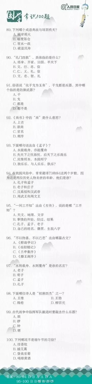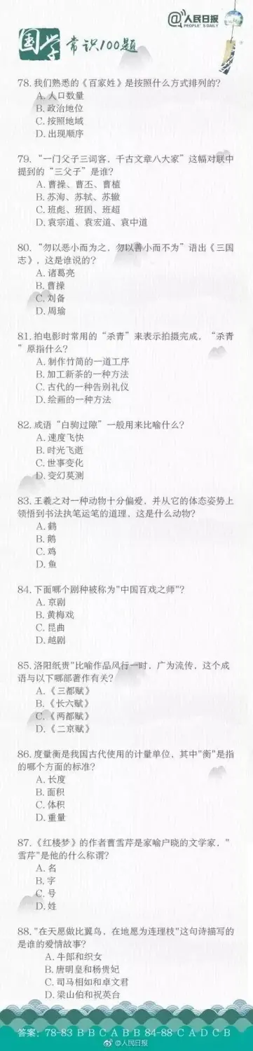 人民日报国学常识100题,你都对了吗?的评论 (共