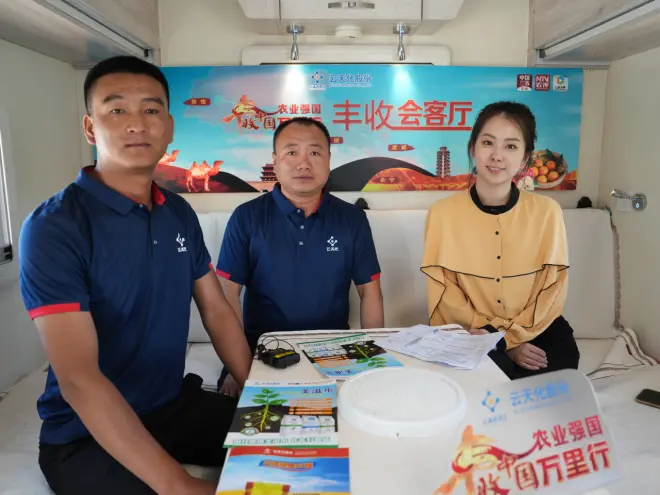 作为国有大型企业,云天化股份秉承“绿色科技服务现代农业“的发展理念,积极服务于中国农业现代化。在此环节,丰收直播会客厅特地邀请云天化西北大区河西区域业务代表苏金元和云天化经销商张永文从绿色制造理念出发向大家介绍在作物生长过程中使用的专用水溶肥,向大家科普如何科学用肥和减肥增效,也进一步展现了云天化股份针对特定区域、特定作物积极开发制定种植解决方案,帮助区域农业实现标准化、高品质生产的企业发展特色理念。同时,云天化股份坚持创新现代农业生产模式,凭借强大的技术创新和模式创新能力,成为现代农业提质增效的有力保障。