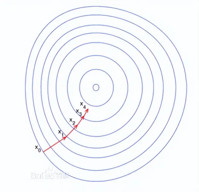 那么,为什么这样认为呢?由于图4的梯度定义只是说明存在一个梯度方向,但并没有告诉我们梯度具体是那个方向,这需要从等高线来理解:
