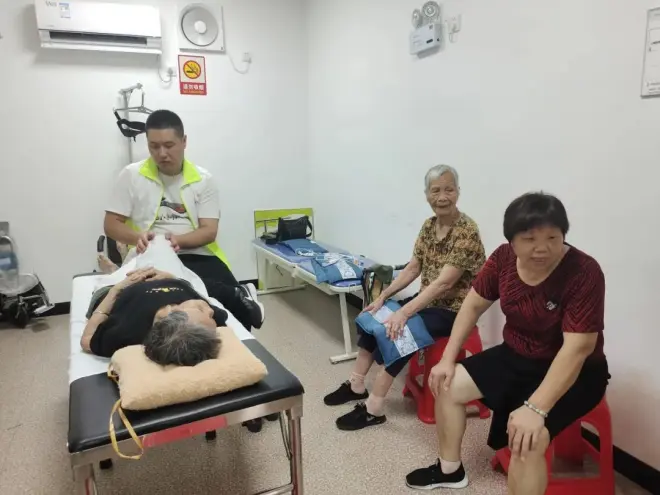 为提高社区长者对自身健康的关注,提升长者保健康复意识,东二社区幸福院于7月31日上午,诚邀专业按摩师杨师傅为社区长者开展康复护理服务。
