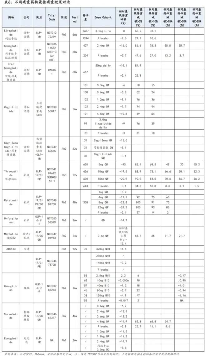 (3)GLP-1多肽类药物减重效果优异