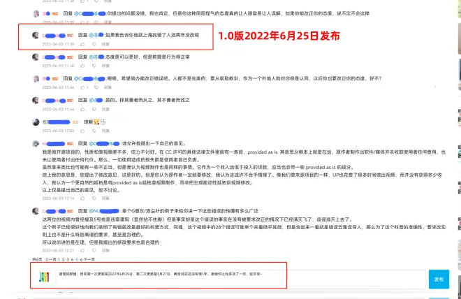 初制版更多的是处于数据收集和普及性阶段,无论是修改所需时间还是修改技术难度,都不符合当时的计划。过度停留在一座城市,是对等待其他城市地铁发展史观众的不公平(他们更多的是基于对修改难度的无知或忽略,只要不改,坐实罪名)。此前对观众指出错误我的回复:会出重制版。但到了申通有这么大意见是我想不明白的,难道前面城市的都不看(评论回复)吗?还是因为申通就必须与众不同吗?还是因为做这个视频的时候没有找当地最权威的圆子合作?此时并没有对这里的某些人或某个群体有任何交集或冲突,对于没有辨识度的名称,在2.0版制作前完全不记得他们是谁。到这里的1.0版为止,只是被他们定义为有错不改的惯犯而已。