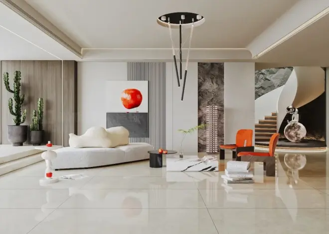 错落自然的石纹游走在瓷砖表面,米黄色调透漏着丝丝温暖,简约风格给人以沉静之感。清雅的米黄色泽,丝丝纹理晕染开来,层次分明,大面积下地铺贴也不会扰乱整洁的空间视觉,展现出摩登时尚的“曼哈顿式”生活。