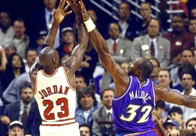 乔丹和马龙。最后就是乔丹来说,在1997年和1998年的两个赛季里,马龙都打出了非常出色的表现并率队杀入了总决赛,而这两年的总决赛里,他们的对手恰好都是宣布第二次复出的乔丹。1997年总决赛中,马龙已经打出了非常无解的表现,但乔丹更胜一筹的表现则让马龙的第一次总决赛之旅以失败告终。随后的一个赛季,双方再度于总决赛中相遇,而在关键的第六场比赛中,乔丹最后时刻抢断马龙并投中绝杀球,亲手将马龙淘汰出局。这两次总决赛中马龙已经做到了极致,因此,也有不少球迷称如果不是生在乔丹的时代里,马龙无疑能获得更多的个人荣誉和更高的历史地位。