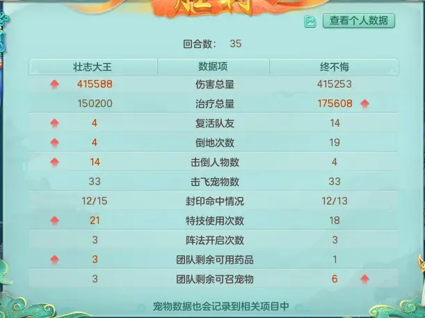 还在第22回合击杀DF,缓解压力,加速对手药品消耗,但自身宠物消耗也极大。