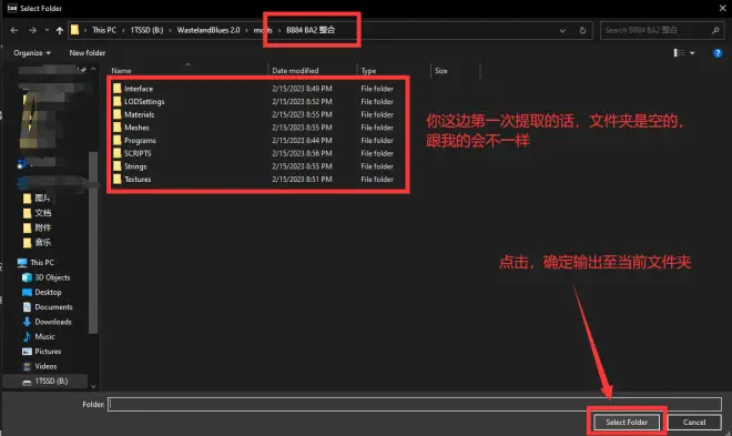7. 弹出来提示提取至哪个文件夹,选择你刚刚创建空模组的路径