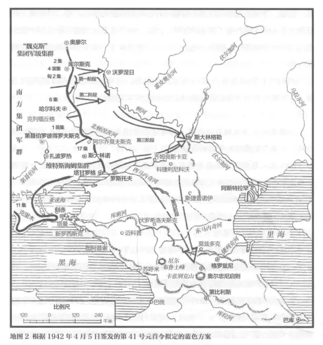根据这一命令,德军统帅部拟定了“蓝色”方案,共分为4个步骤: