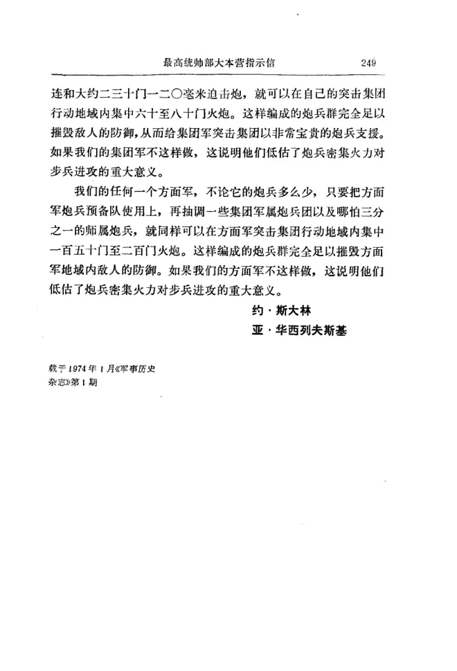 训令下发后,红军火炮的使用情况有所改善:1941年时,红军一线部队发起进攻时平均每公里正面仅有7—12门火炮和迫击炮,到1942年夏则增加到了45—65门。