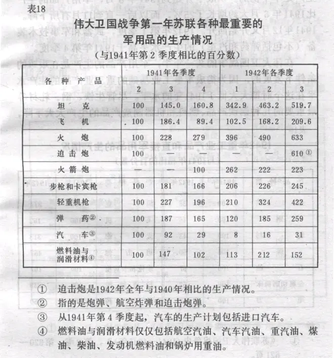 但是,由于苏联实行了举国体制,充分地调动了一切人力物力最大限度地维持并发展军事工业;同时,转移到苏联内地的军工厂也陆续恢复生产,苏联在1942年的军火生产(除弹药增加较慢外)仍然比上一年大大增加: