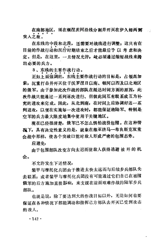 总而言之,按照希特勒的计划,德军将从库尔斯克与哈尔科夫地区,先向东方,后向东南方发动战略性的主要突击,以围歼顿河以西的红军。德军向东南方向运动势必使顿河上游一线成为其左侧作战边界。向东南方向进展愈远,顿河翼侧暴露的面就愈大。在攻势发起前,南方集团军群的正面从奥廖尔至塔甘罗格绵亘约500英里,而计划前出到的战线则从奥廖尔到斯大林格勒,然后向南延伸至格罗兹尼地区,再沿高加索山麓折向亚速海,全长约1300英里。