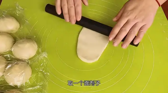 2.称重,根据重量把面团平均分成9份,用保鲜膜盖起来