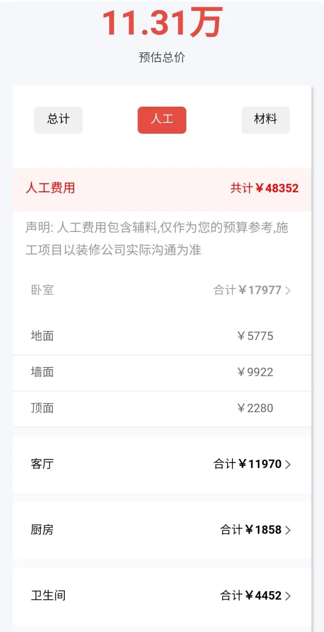 快速获取本地装修价格,10秒在线免费报价,还有具体的装修费用明细。
