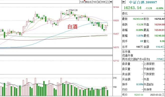 分析:白酒选择上涨,但是临近20日均线和60日均线附近时,出现了下跌的走势,近期要重点留意能否向上突破,结束回调行情,在有效突破之前,短线需要谨慎一些。
