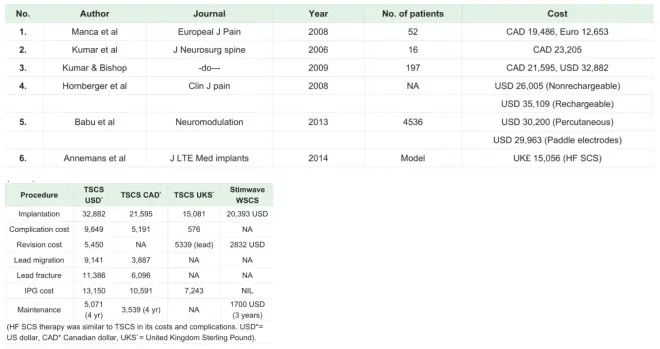 SCS植入的费用包括初始植入费用、年度维护费用和治疗并发症的费用。每年的维护负担会增加,如果出现并发症,则预算可能会增加18%。