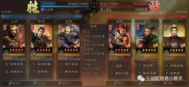 可以看到对战藤甲群盾和吴骑的战报,打盾兵队伍即便是藤甲兵也挡不住,反倒是吴骑的确不太好赢!