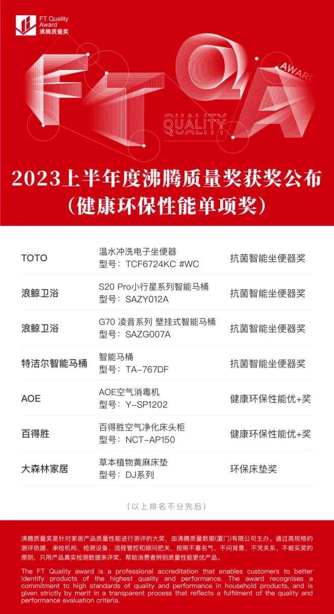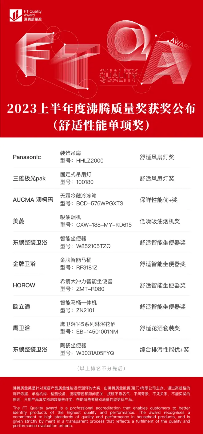 下面,重磅公布2023上半年度沸腾质量奖测评获得“沸腾质量单项奖”的产品名单: