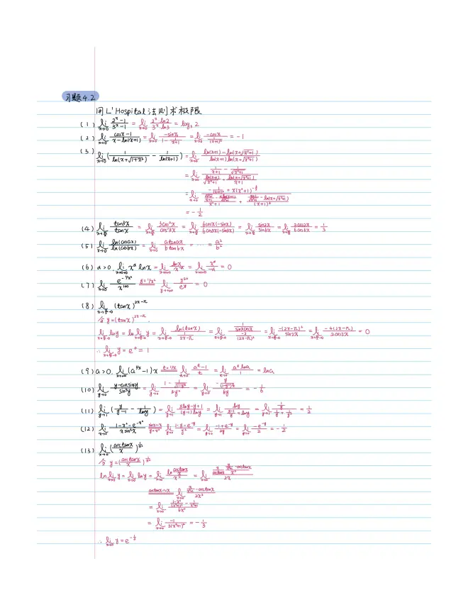 高等数学(北大版)笔记习题(4.1)微分中值定理与泰勒公式-微分中值定理与洛必达法则的评论 (共