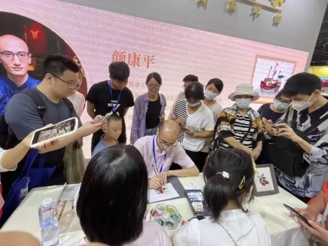 非遗:广东非遗通草画亮相南国书香节。现场的通草画技艺展示,更是吸引了众多读者的关注并参与其中进行体验。颜康平的通草画绘制技艺娴熟精湛,其作品具有造型准确、能呈现出如文献记载的通草画“宛若堆绣”的独特质感效果。