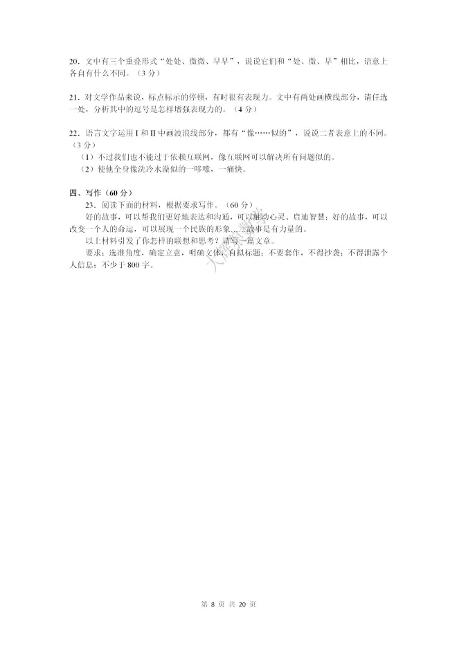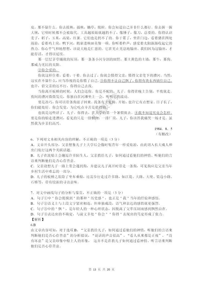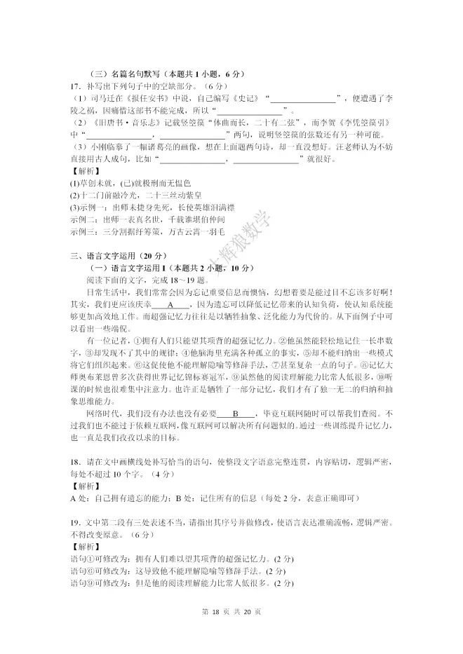 为了方便大家更好地复习备考,特地写了这份语文试卷的逐题详细解析,希望能对大家的备考起到更好地助推作用,但由于时间精力有限,如有错误,敬请指出,非常感谢!
