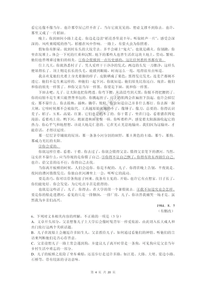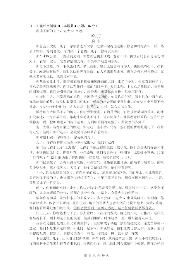 现代文阅读的第二篇选自当代作家陈村的小说《给儿子》,通过这篇文章,旨在引导考生多关注乡土、劳作,并从中得到有所感悟。