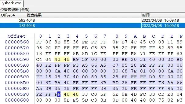 是为了方便我们搜索时的特征值,至此我们分别记录下起始地址592