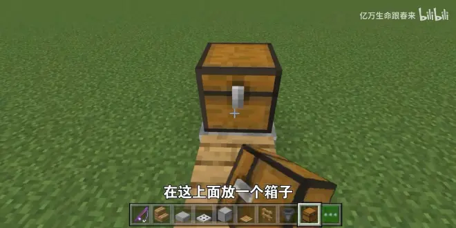 1.放两个箱子 后面接一个漏斗 再漏斗上面放栅栏 压力板 放一个橡木阶梯空一格放一个平滑石台阶