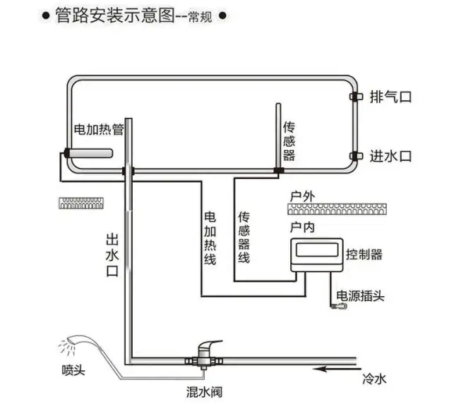 分体式太阳能热水器比较常用,它通常安装在离厨卫较近的阳台上。