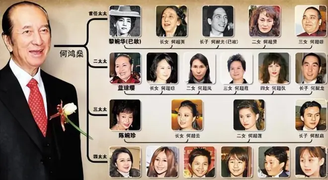 最知名的当属赌王一家,四位姨太太为何鸿燊生下了的孩子比一个足球队还要多。