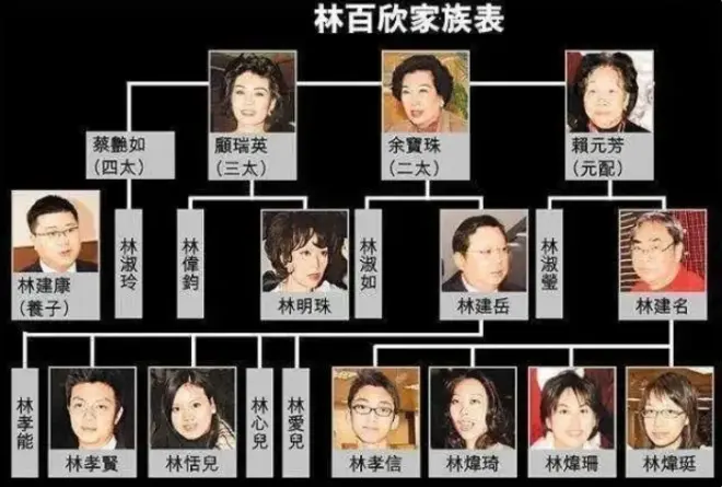 靠制造业白手起家的林百欣也没有逃过这个“魔咒”,四位太太、四个孩子。